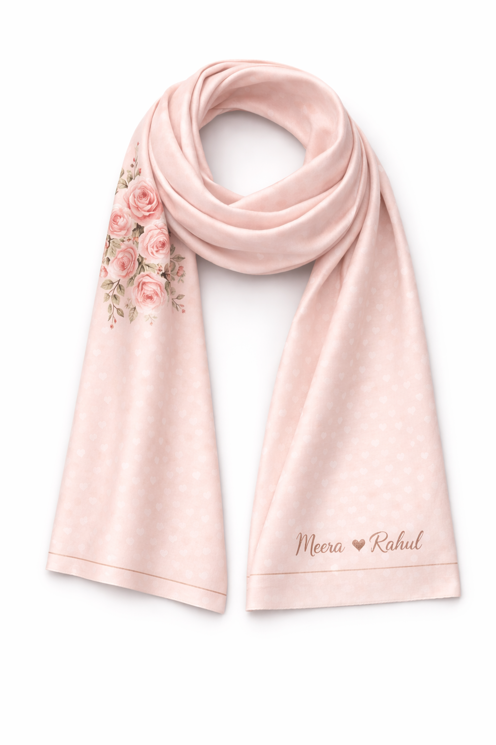 Printed using high-quality sublimation all-over printing (AOP), the design looks rich, vibrant, and long-lasting—turning the stole into a wearable keepsake. Whether you choose a romantic theme, initials, a special date, or a customised design, this stole becomes more than an accessory—it becomes a memory wrapped in luxury.